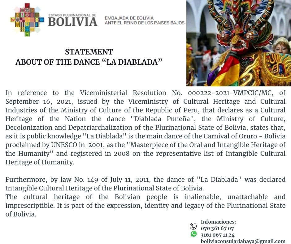 Comunicado acerca de la danza de “La Diablada”